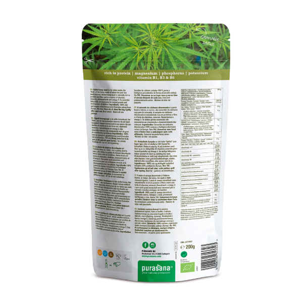 100 % graines de chanvre écossées brut et biologique (Cannabis sativa, 50 % protéine) de l’Europe.